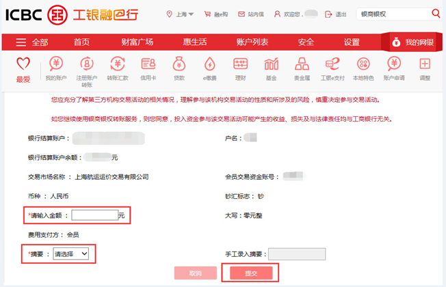 第三步:填寫金額,選擇摘要,核對相關(guān)信息,確認無誤后點擊“提交”。