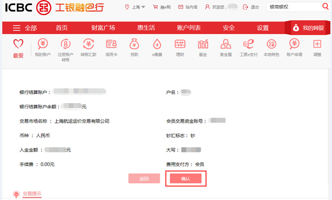 工商銀行官方網(wǎng)站(www.icbc.com.cn)→登錄網(wǎng)上銀行→輸入正確的卡(帳)號/手機號/用戶名、密碼、驗證碼,點擊登錄→進入工商銀行網(wǎng)銀,選擇“銀商銀權(quán)轉(zhuǎn)賬”→選擇“我的交易市場”→選擇交易市場→選擇“出金”→填寫交易金額,核對相關(guān)信息,確認無誤后點擊“提交”。