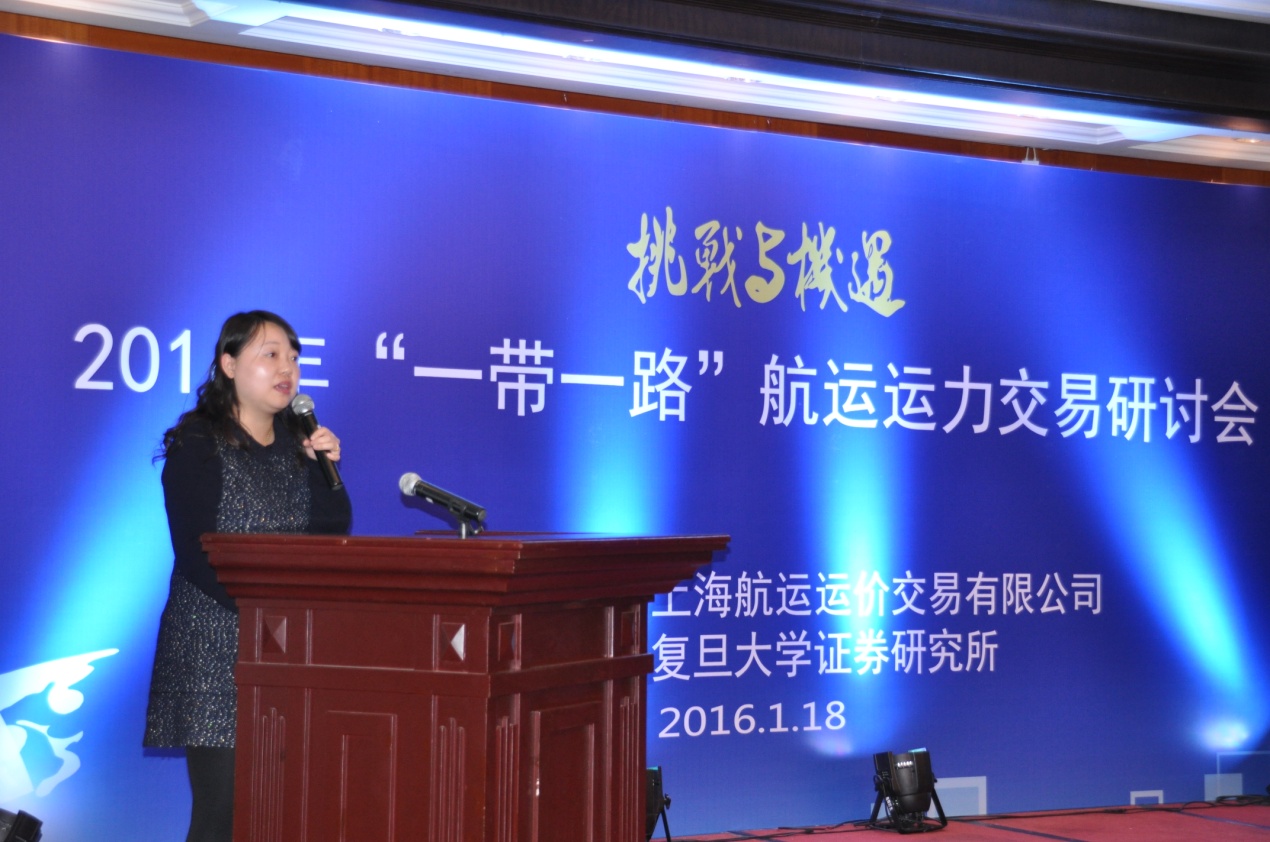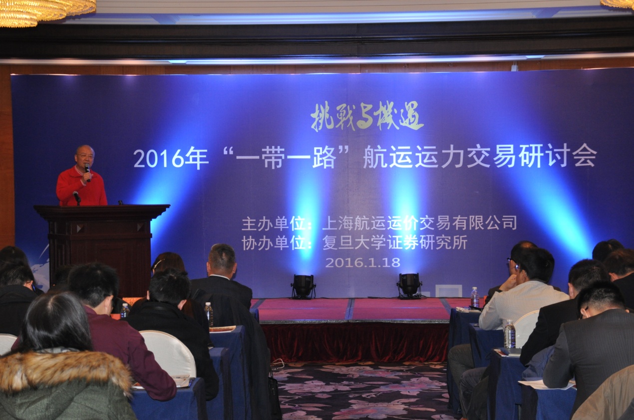 2016年1月18日上午,由上海航運(yùn)運(yùn)價(jià)交易有限公司主辦,復(fù)旦大學(xué)證券研究所協(xié)辦的2016“一帶一路”航運(yùn)運(yùn)力交易研討會(huì)成功在滬舉辦。來(lái)自上海航運(yùn)交易所、上海國(guó)際航運(yùn)研究中心、申銀萬(wàn)國(guó)證券研究所、新湖瑞豐、福建國(guó)航和中煤華東等航運(yùn)和金融相關(guān)機(jī)構(gòu)的專家、學(xué)者、業(yè)界人士齊聚一堂,探討航運(yùn)業(yè)和金融業(yè)的創(chuàng)新發(fā)展之路。