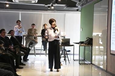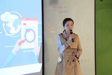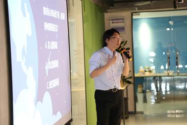 圖為運價公司研發(fā)部吳晶做《期貨交易基礎(chǔ)知識》主題演講