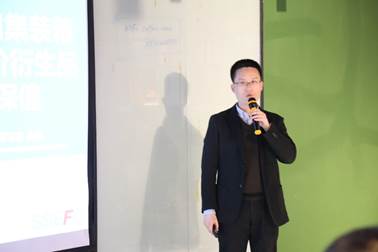 圖為運價公司研發(fā)部總監(jiān)俞斌做《上海出口集裝箱運價衍生品套期保值》主題演講