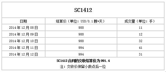 國際干散貨運力交易合同CC1412、PC1412、SC1412交收公告