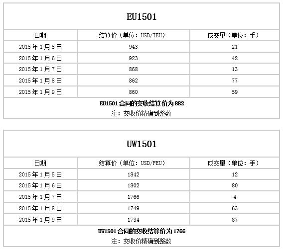 上海出口集裝箱運力交易合同EU1501、UW1501交收公告