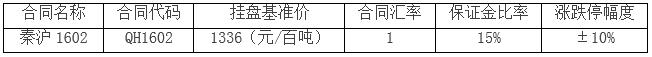中國(guó)沿海煤炭運(yùn)力交易合同秦滬航線QH1602定于2015年11月9日上市交易,最后交易日為2016年2月5日,最后交收日為2016年2月12日,首日上市合同基本參數(shù)如下: